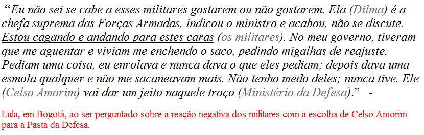 Difícil acreditar que este idiota, imbecil, arrogante, corrupto, prepotente e ANALFABETO, foi presidente do Brasil Só no Brasil esse tipo de aberração é possível. Vejam na imagem o desrespeito do ex-presidente com os Militares.