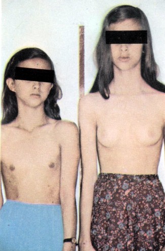 Irmãs. A da direita aos 12 anos com desenvolvimento normal. A da esquerda, com 15 anos, puberdade tardia