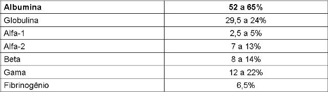 No plasma humano normal, 6 faixas distintas foram identificadas. Elas são designadas, na ordem de sua mobilidade decrescente, como albumina, alfa 1 e alfa 2 globulinas, betaglobulinas, fibrinogênio e gama globulina.