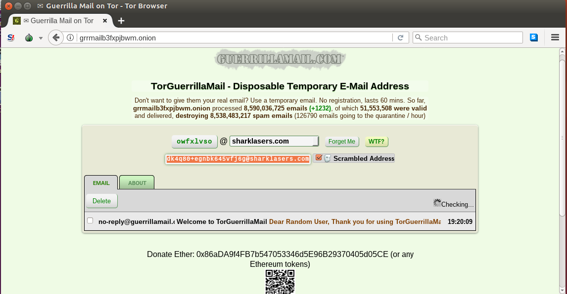 Guerrilla Mail fornece e-mails temporários, sem registro e gera um e-mail anônimo para uso. Todos os e-mails enviados são apagados em 24 horas. Guerrilla Mail não precisa ser necessariamente acessado pela rede Tor.